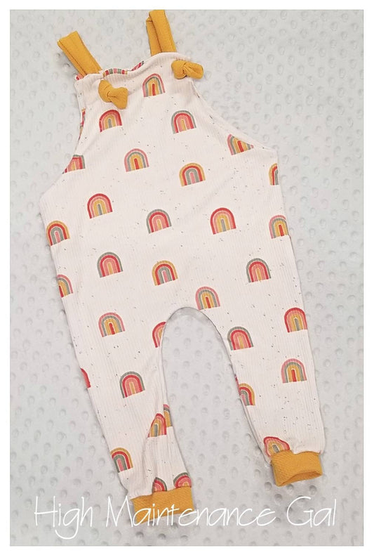 Rainbow overalls, Knotted overalls, Wild child outfit